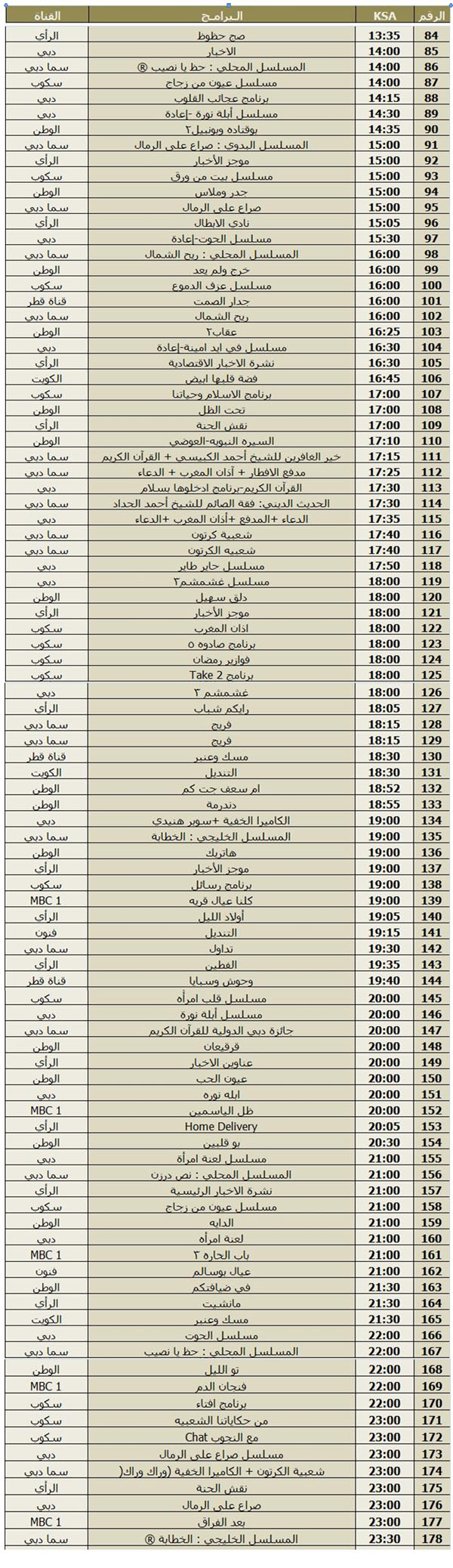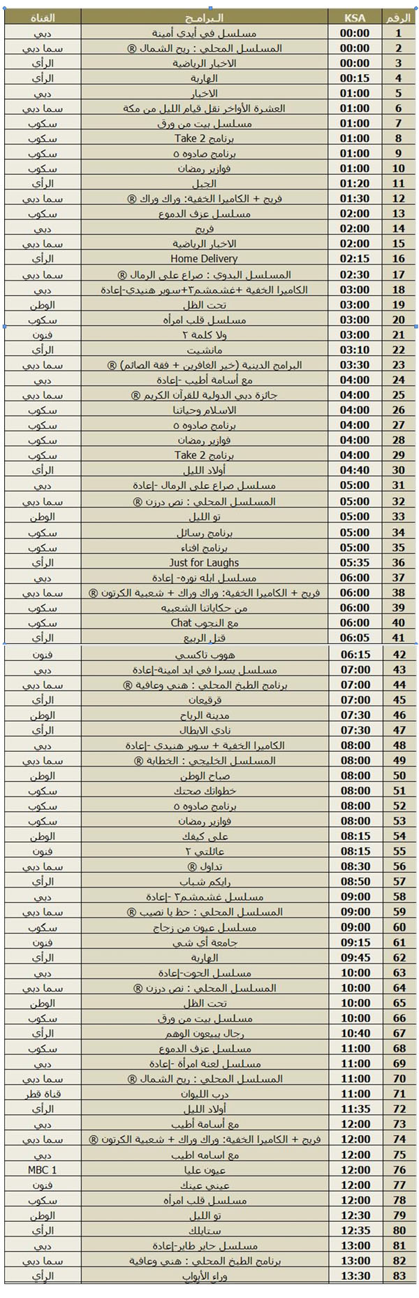 ميرسي أبو الغاااااااااااااااااااااااااااب لك الله يريحك متل ما ريحتني رح أطبع الجدول و لزقو فوق التلفزيون
