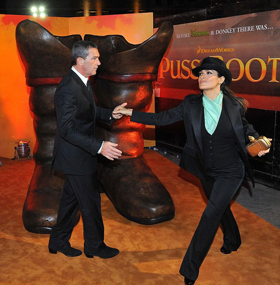حضر النجمان انطونيو باندرياس وسلمى حايك، أمس، عرض فيلمهما “Puss In Boots” بلندن، وتألق الثنائى وخاصة سلمى حايك، وشاركهما حضور الحفل شخصيات ديزنى الشهيرة شريك وحبيبته الجميلة، وبعض شخصيات من فيلم شريك.