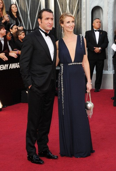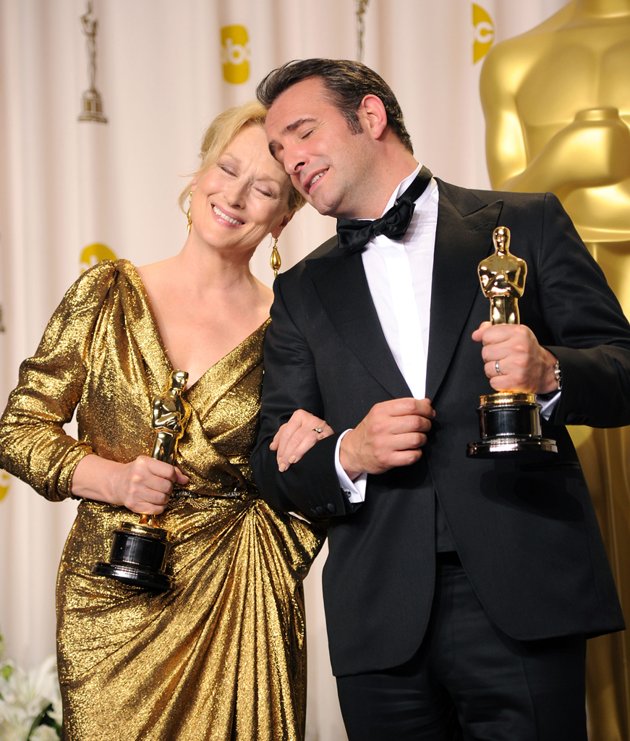 الفنانة ميريل ستريب والفنان جون دوجاردان يحتفلان بجائزة الأوسكار لأفضل ممثلة وأفضل ممثل