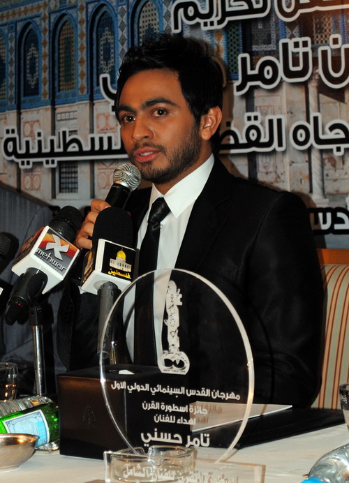 مهرجان القدس يكرم تامر حسني لرفضه لقب