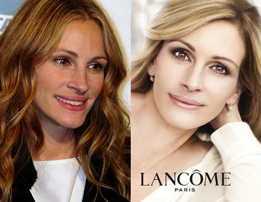اضطرت شركة “لوريال” لمنتجات التجميل لسحب إعلانات لها تظهر فيها الممثلة جوليا روبرتس والعارضة كريستي تيرلنغتون بصورة شابة، بعد أن عولجت الصور المستخدمة بتقنية “إيربراش” لمسح التجاعيد