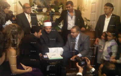 واقتصر عقد القران الذي أقيم ليلة أمس على أسرة العروسين، وعدد من أصدقائهما المقرّبين. ويأتي عقد قران المطرب المصري قبل أسبوعين من زفافه الذي حدد في السابع من كانون الأول (ديسمبر) المقبل. وسيقام في “فندق فورسيزن” في القاهرة.