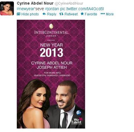 بدأت القنوات الفضائية والمحلية عرض اعلان حفل رأس السنة للنجم عاصي الحلاني والنجمة هيفا وهبي الذي سيقام في قاعة بيال الكبرى ومن تنظيم شركتي "آي غروب وأم آر سفن".