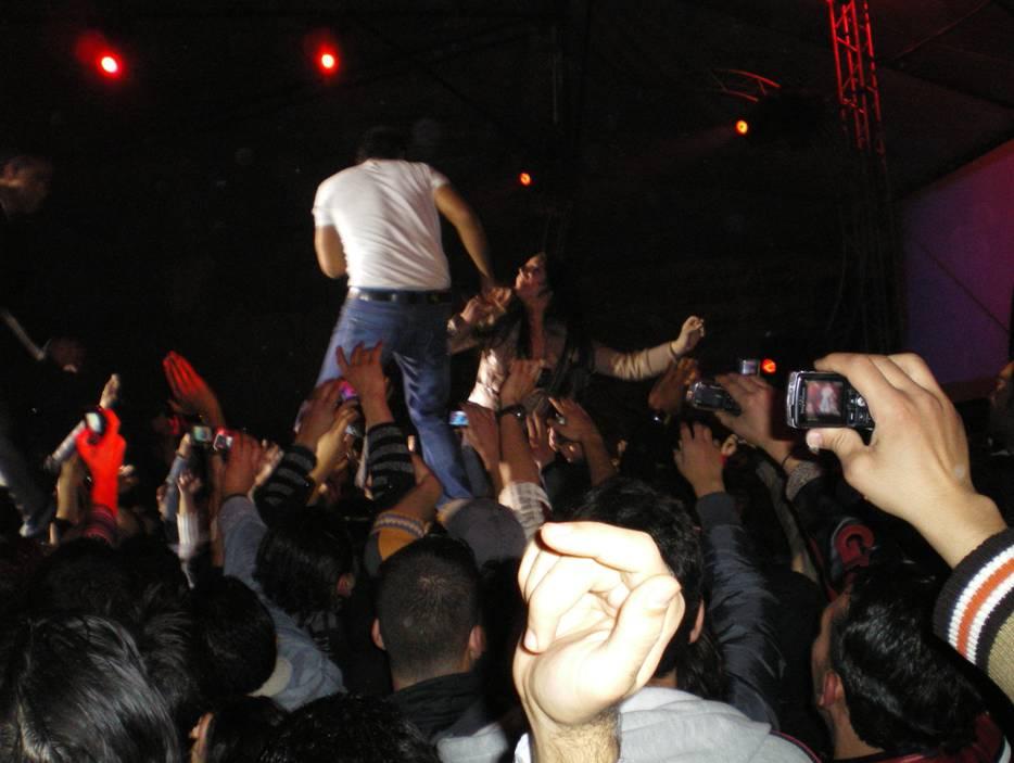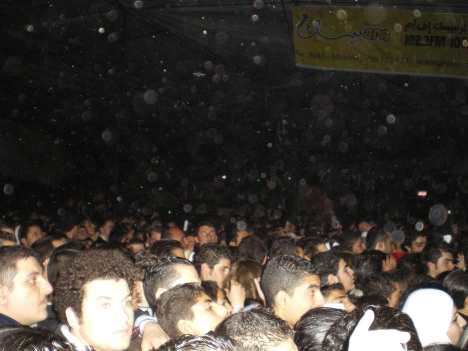 وفي نادي فينيسيا أكثر من 4000 شاب وفتاة انتظروا ، ومثلهم انتظر خارج الصالة ، وقفوا لأكثر من ساعتين ينتظرون تامر ، الذي أخره احتشاد الجماهير ، الذين رافقوه من الفندق حتى الصالة ، وفي تمام التاسعة بدأت الحفلة.