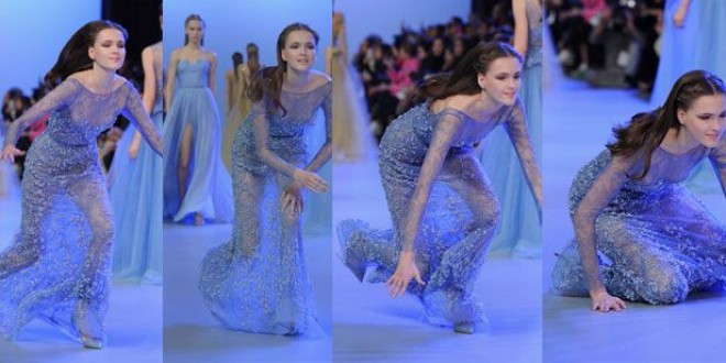 رد: عارضة أزياء تعثرت ووقعت أرضًا في عرض إيلي صعب