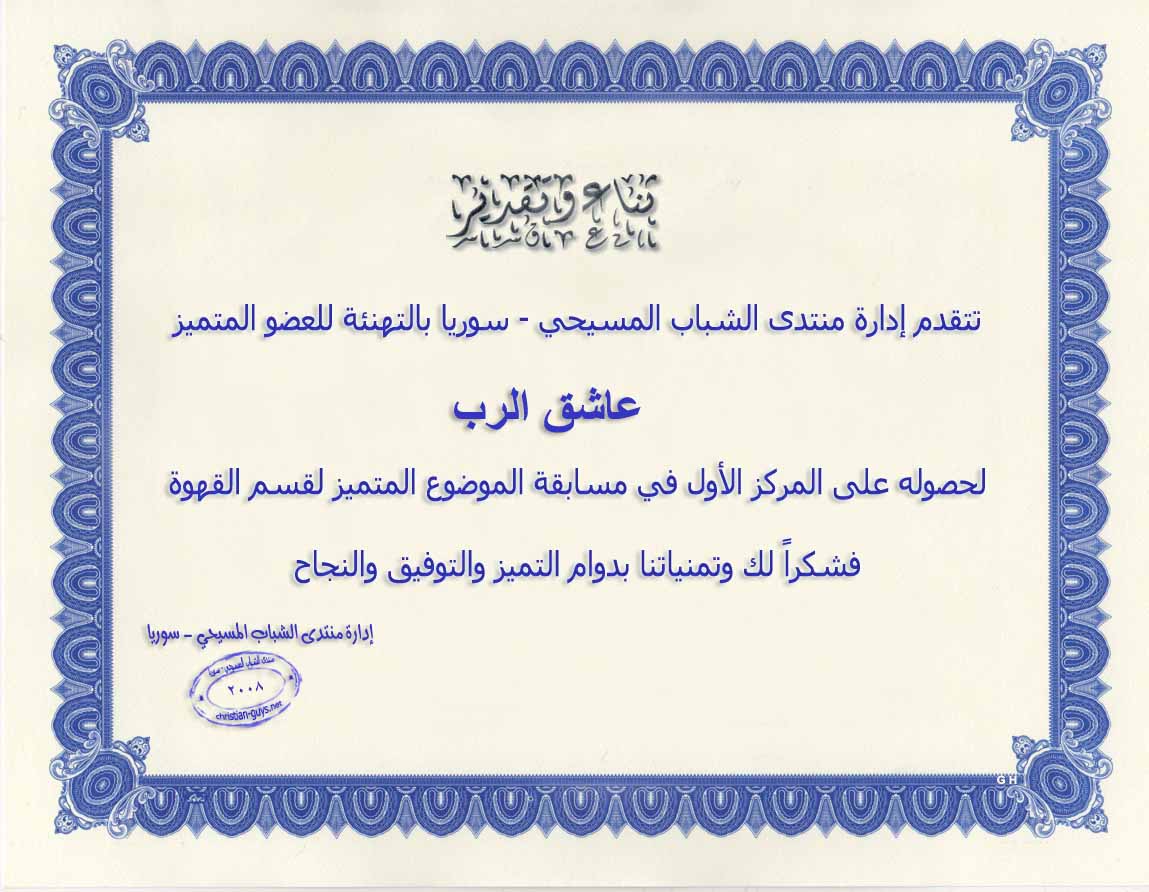 مبروك عليك الفوز بالمركز الاول ومبروك على المنتدى الرب يبارك حياتك ونعمته تشملك
