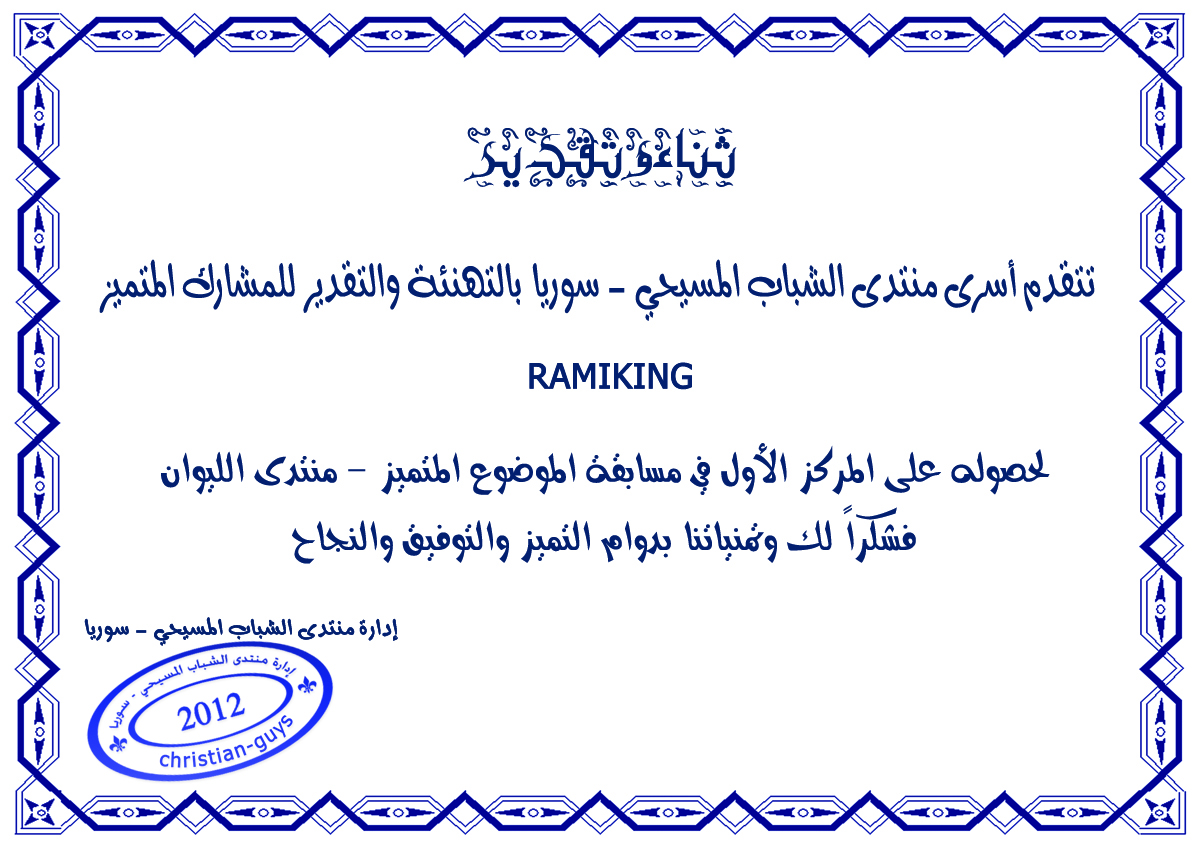 رد: مبروك ramiking ومبروك للجميع مسابقة الموضوع المتميز - الليوان