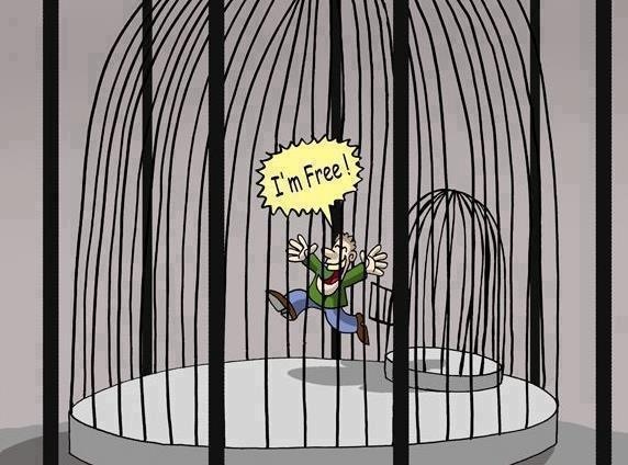 قلت الحرية الي منطلبا أو بيطلبوها ( لأني ما بطلبا ) هيي حرية زائفة لأن بيطلعوا من قفص لقفص أكبر