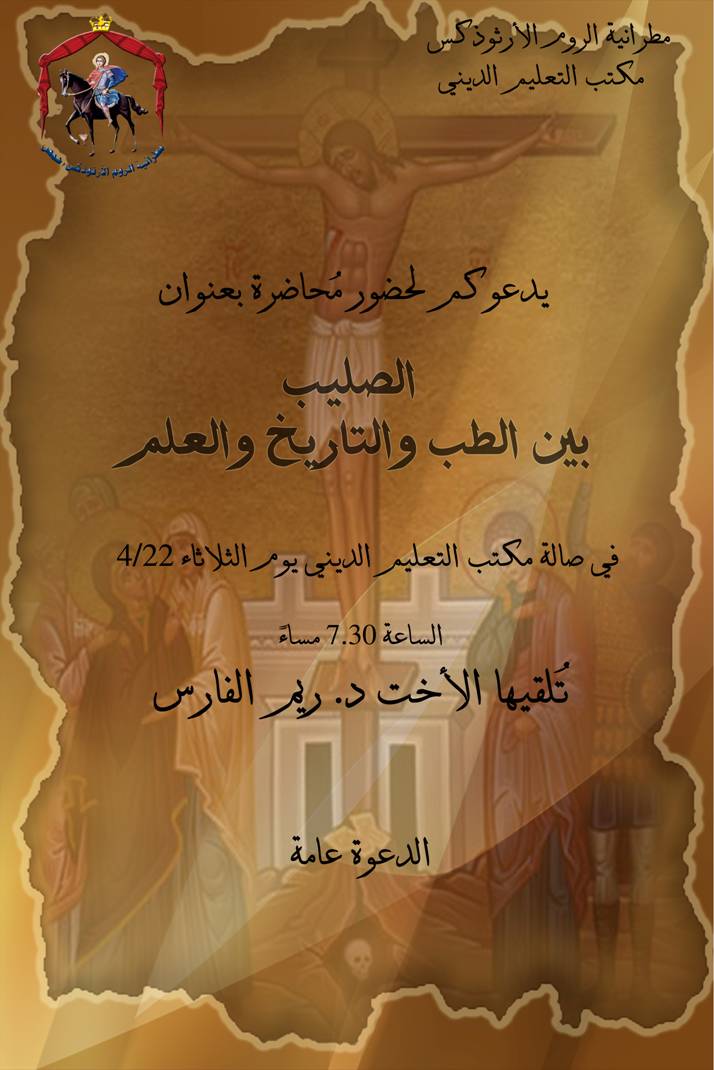 انشالله تكون المحاضرة موفقة - بصلواتكم- لأنو عم حاول اشتغل عليها لحتى تليق بالحدث العظيم وهو صلب ربنا