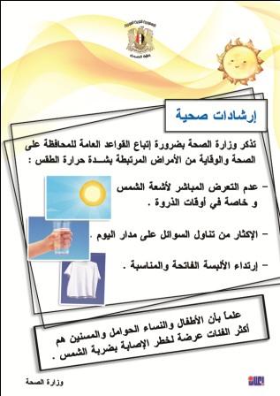 • وزارة الصحة تحذر: على المواطنين ارتداء الملابس الفاتحة وأغطية الرأس