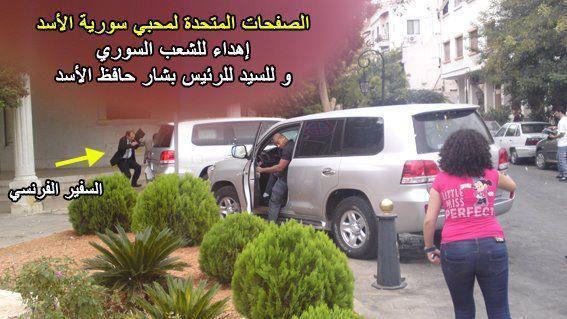 تعرض سفير فرنسا في سوريا، اريك شوفالييه، للقذف بالبيض والحجارة وذلك بعد خروجه من لقاء مع