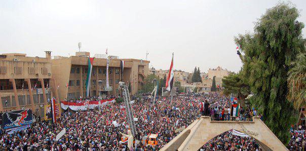 تجمعت حشود غفيرة من أبناء المحافظة في ساحة السيد الرئيس دعماً للقرار الوطني المستقل ورفضاً للتدخل الخارجي وتقديراً لمواقف روسيا والصين الداعمة لسورية في مواجهة المؤامرة التي تتعرض لها.