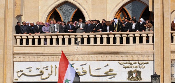 توجه السيد الرئيس بشار الأسد بعد أدائه صلاة عيد الأضحى المبارك إلى مبنى المحافظة في الرقة حيث التقى هناك عددا من رؤساء العشائر والوجهاء والفعاليات الاجتماعية والسياسية والاقتصادية في المحافظة.