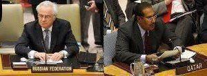 في تسجيل بثته القناة الفرنسية الثانية : وقعت مشادة كلامية بين مندوب روسيا في مجلس الأمن فيتالي تشوركين ووزير خارجية قطر حمد بن جاسم، حيث وجه بن جاسم الكلام لمندوب روسيا قائلا: