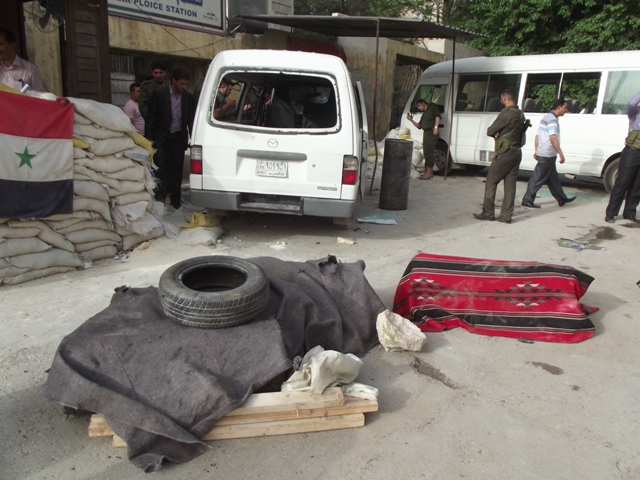 وقال التلفزيون الذي يبث من محافظة حلب ان " انتحاريا يقود باصاً مفخخاً مسروقاً من الإسكان العسكري حاول اقتحام قسم شرطة الشعار فمنعه عناصر حراسة وفتحوا النار عليه، فقام الانتحاري بتفجير نفسه ما أدى إلى وفاته إصابة عنصر شرطة" .