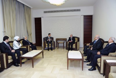وبعد ذلك اجتمع الرئيس الأسد برئيس وأعضاء المحكمة وأكد لهم أهمية الدور المنوط بالمحكمة فيما يتعلق بدستورية القوانين ونزاهة الانتخابات الرئاسية والتشريعية وخصوصا بعد اقرار الدستور الجديد للبلاد وبعد الانتخابات التشريعية التي جرت مؤخرا وتمنى سيادته لهم النجاح في تحقيق مهامهم.
