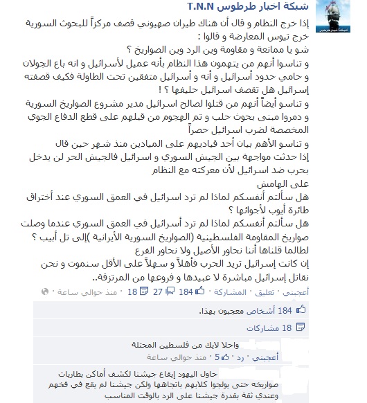 رد: طائرات حربية إسرائيلية قصفت مركزاً للبحث العلمي في ريف دمشق