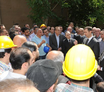 رد: الرئيس الاسد يهنئ عمال سورية بعيدهم ميدانيا من محطة كهرباء حديقة تشرين بدمشق