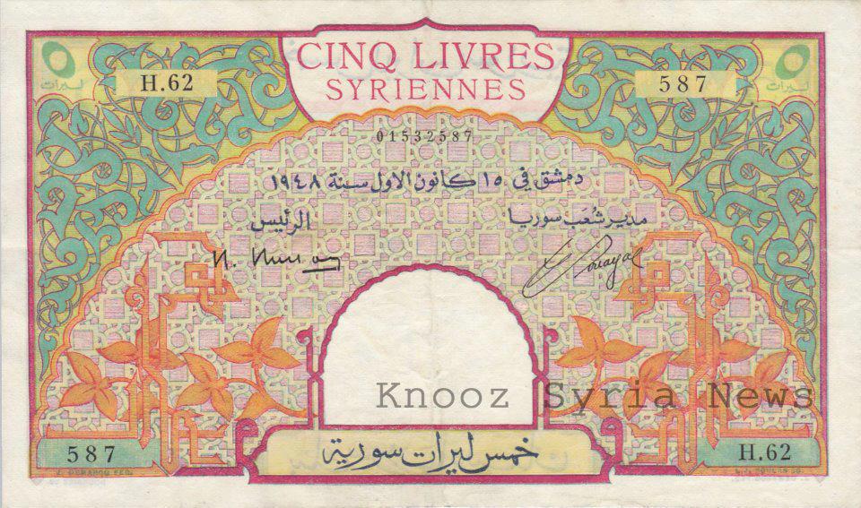 عملة سوريه نادره ولم تستعمل كثيرا 5 ليرات سورية سنة 1948