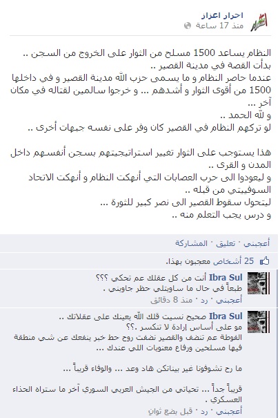 في حال كان هذا الكلام ((صحيح)) , لماذا تدخلون بين المدنيين .. بالعامية .. (ليش ما بتحاربو بالصحرة والمناطق اللي مافيها مدنيين)