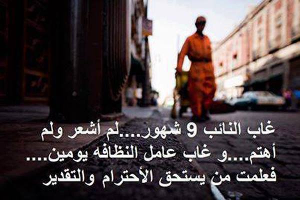 اصلاً ع القليلة اذا الناس مابدها تحترمه بتعاملها معه، تحترمه بتسميته " عامل نظافة" بدل من زبّال