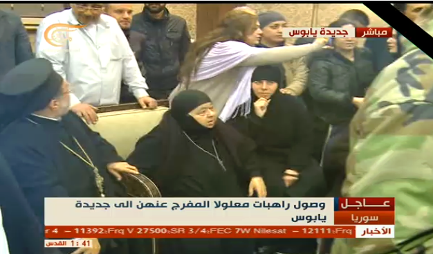 وبحسب المعلومات فإنه تم الإفراج عن الراهبات عبر عرسال التي وصلها وفد قطري وآخر أمني، لتسلمهن ليتوجهن بعد ذلك إلى نقطة المصنع ومنها الى جديدة يابوس، فيما جرى الحديث أن شخصية أمنية ستكون برفقة الراهبات.
