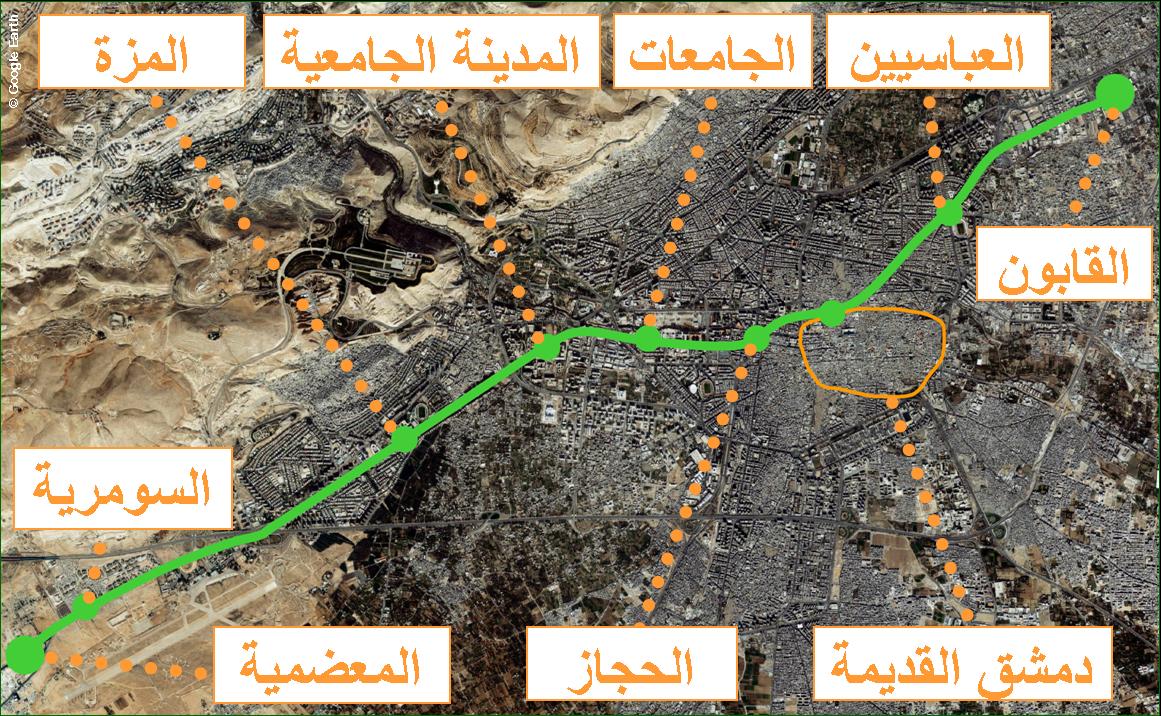 يقع على عاتق الاستشاري الفرنسي اللبناني (SYSTRA / KHATIB & ALAMI) مسؤولية القيام بدراسة اختيارات (الدراسات الأولية) برعاية محافظة دمشق.