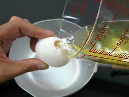 3) تُعيد زلال البيضة إلى داخل القشرة (من ذات الثقب)
