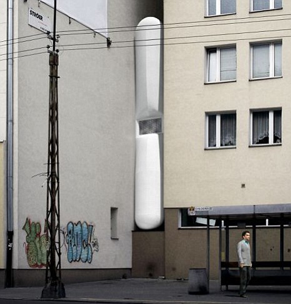 يتم الآن بناء البيت في فاصل صغيير بين بنايتين في مدينة وارسو في بولندا حيث جاءت الفكرة للمصمم من الفجوة الموجودة بينهما وشعر بحاجة لملء هذه المساحة بطريقة مبتكرة ومفيدة!
