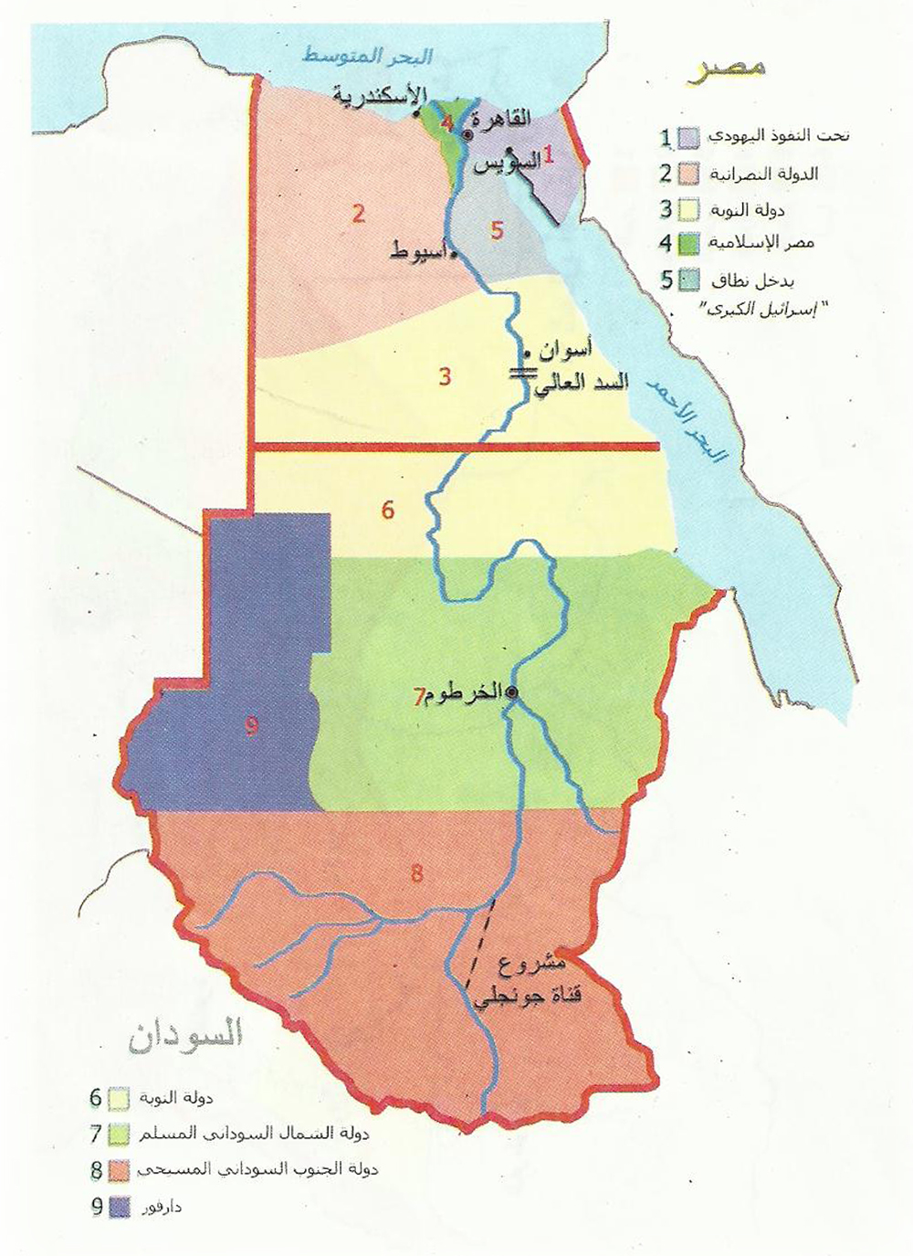 خريطة تقسيم مصر والسودان