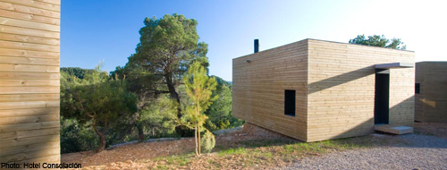 مؤلف من 10 مكعبات خشبية مستقلة كمساكن، على بعد 3 ساعات من برشلونة. تكلفة الغرفة ابتداء من 185 دولاراً في الليلة.