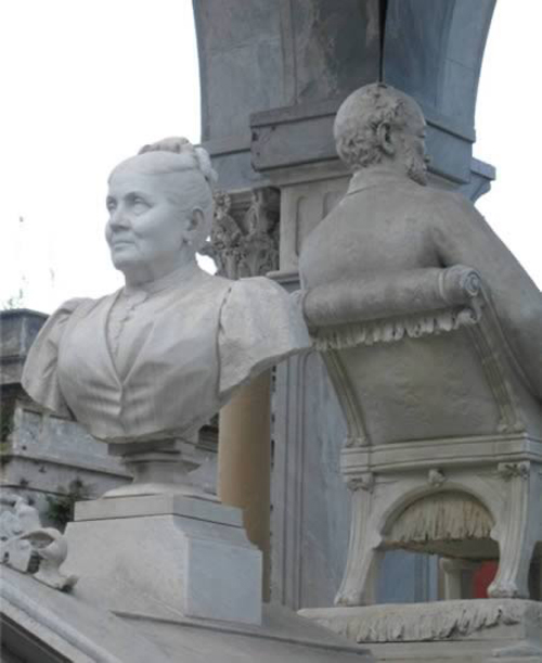 تقع هذه المقبرة في ريكوليتا في الأرجنتين، ويظهر فيها رجل جالس على كرسي يبحث بعينيه في الأفق، بينما زوجته في ظهره متجهة بوجهها إلى الناحية الأخرى، وفي البداية تم وضع تمثال الرجل وعند وفاة زوجته وجدوا في الوصية طلبها بأن يتم دفنها وهي تنظر للاتجاه المعاكس لزوجها للإشارة إلى حياتهم الزوجية التي استمرت 30 عاماً دون أن يتبادلا كلمة.