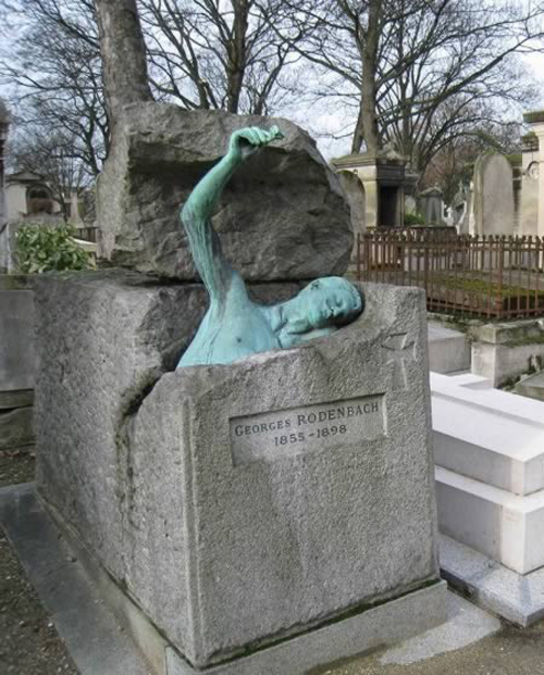 تعد مقابر "بير لاشيه" في باريس من أكثر المقابر زيارة في العالم، نظراً لتصميمات الضريح الجميل إلى جانب أن عديد من المشاهير مدفونين بها، وربما أشهر ضريح فيها ذلك الخاص بالكاتب البلجيكي "جورج رودينباخ" الذي عاش في القرن الـ19 ورغم كتاباته لم يحصل على شهرة كافية، وطالب عند وفاته أن يتم تصميم شاهد قبره على شكل شخصية إحدى رواياته والتي تظهر تخرج من القبر حاملة وردة.