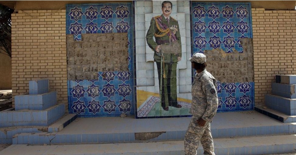 بس عجيب تاركين تمثال صدام حسين واسمه بالقصر