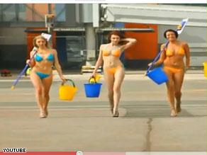 ويظهر في الإعلان الذي حقق قرابة 700 ألف مشاهدة منذ عرضه في "يوتيوب" مضيفات وهن يتجردن من الزي الرسمي ويبدأن في غسل الطائرة وهن يرتدين البكيني.