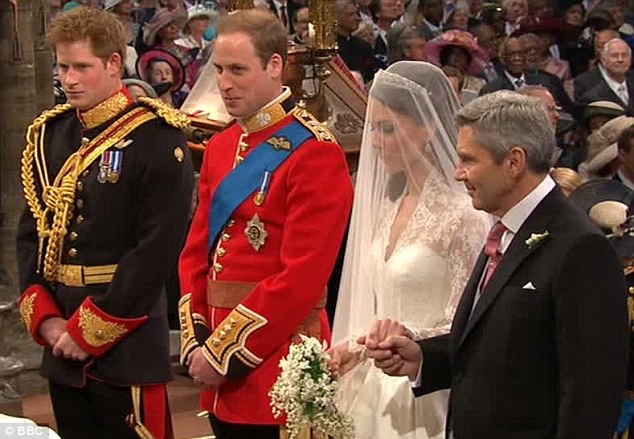 وتقدمت ميدلتون بعد ذلك برفقة والدها مايكل في الممر المركزي للكاتدرائية على انغام جوقة مؤلفة من 20 صبيا لتنضم امام المذبح الى الامير وليام الذي ارتدى البزة الحمراء للحرس الايرلندي.