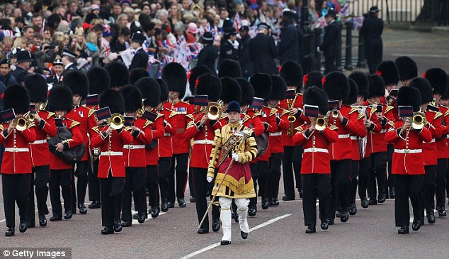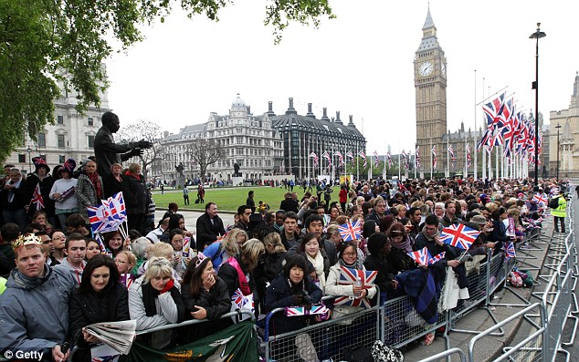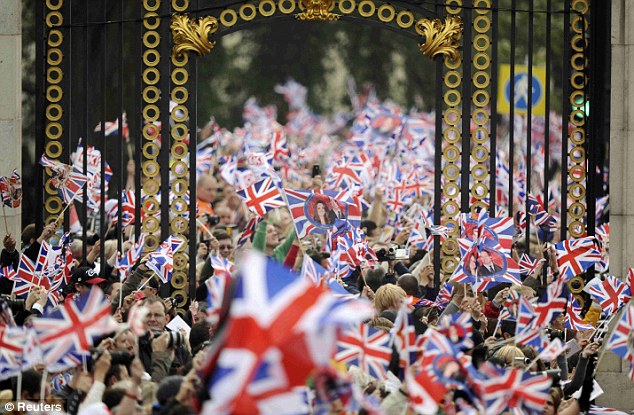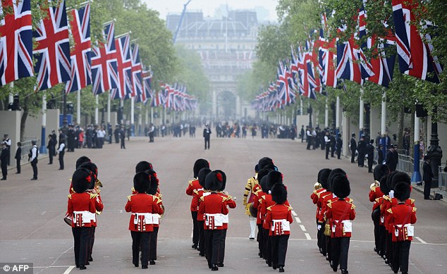 وتجمع مئات الالاف من الاشخاص رغم السماء الملبدة بالغيوم في وسط لندن الذي ازدان بالاعلام البريطانية.