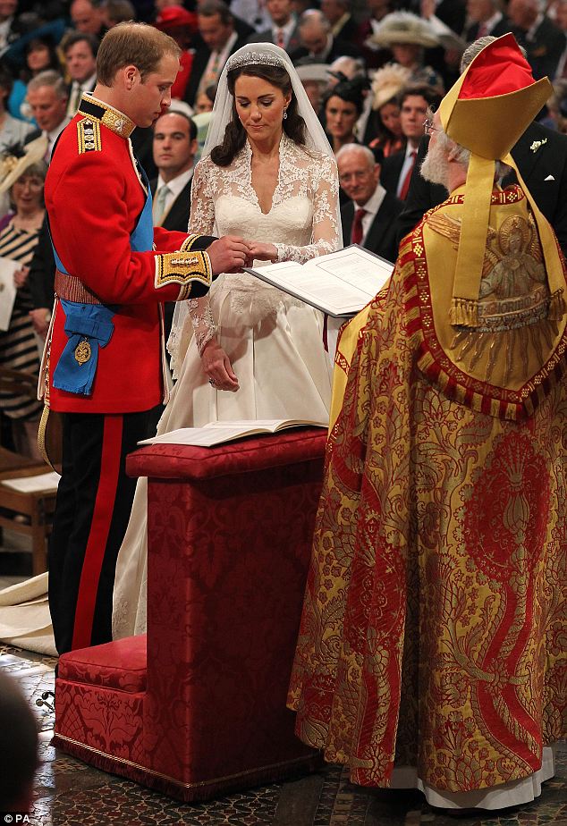 وتبادل الامير وكايت نذور الزواج بعد دقائق قليلة امام رئيس اساقفة كانتربري روان وليامز. لكن في مؤشر الى الحداثة، تجنبت كايت ميدلتون التطرق في نذورها الى انها ستطيع زوجها تماما كما فعلت الاميرة ديانا والدة وليام.