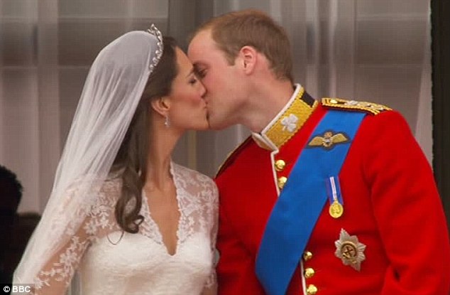 عند الساعة 12,25 بتوقيت غرينتش سيخرج الامير وكايت الى شرفة القصر ليتبادلا اول قبلة رسمية وهي لحظة تترقبها كاميرات العالم اجمع.