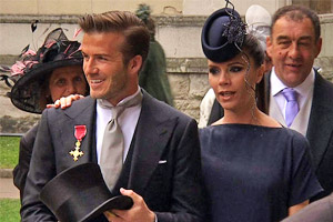 تقدم النجم الإنجليزي ديفيد بيكام لاعب منتخب إنجلترا ونادي جلاكسي الأمريكي وزوجته فيكتوريا المدعوين لحفل زفاف الأمير ويليام، نجل ولي عهد بريطانيا الأمير تشارلز، وعروسه كيت ميدلتون بكنيسة “وستمينستر آبي”.