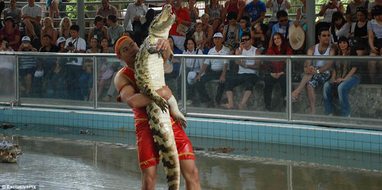 ويقول المصور برونيك كامنسكى، الذى شهد المغامرة الفذة: “التماسيح نشيطة جدا ولا تكون نصف نائمة أثناء العرض”. وعادة ما تقضم التماسيح عصى من الخيزران بصوت عالٍ أو تعض عليها، ثم تتم استثارتها قبل أن يضع الرجال رؤوسهم فى أفواهها ويبقونها هناك لفترة طويلة، وتضم الحديقة أكثر من 10 آلاف تمساح.