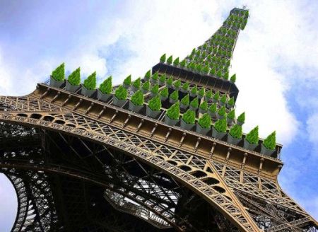 أعلنت شركة فرنسية عن عزمها تحويل برج إيفل إلى شجرة عملاقة من خلال وضع عباءة تتكون من 600 ألف نوع من النباتات حول الهيكل المعدني للبرج.