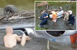 ترك أميركي سيارته الرباعية الدفع، لينقذ طفله البالغ من العمر 5 سنوات، بعدما قفز من السيارة وركض باتجاه نهر، ولكنه الوالد المذعور فوجئ بمخالفة مرورية، لأنه لم يستخدم المكابح تاركاً سيارته تسقط في النهر.