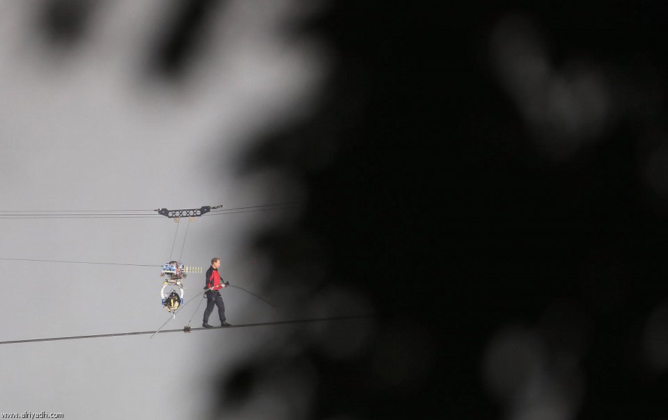 وقد انطلق واليندا وقد ارتدى سروالا اسود وسترة حمراء واقية من المطر عند حلول الليل تحت انوار اضواء كاشفة قوية بعد صلاة قصيرة كما يفعل دائما عندما يصعد الى الحبل.