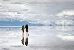 سياح يسيرون على الهواء في أكبر صحراء للملح في العالم