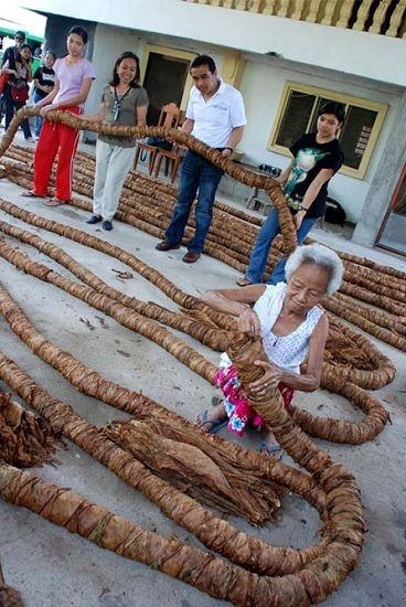 بلغ طول اكبر سيجار بالعالم 43.38 متر حيث قام بلفه رجل يبلغ من العمر 65 منذ وحطم هذا العام الرقم القياسي المسجل باسمه بعدما دأب يحسن ابتكاراته على مر الاعوام.