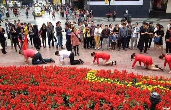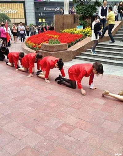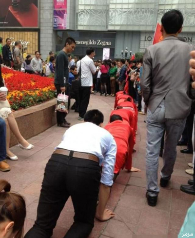 • مدير صيني يجبر موظفيه على الزحف في ميدان عام