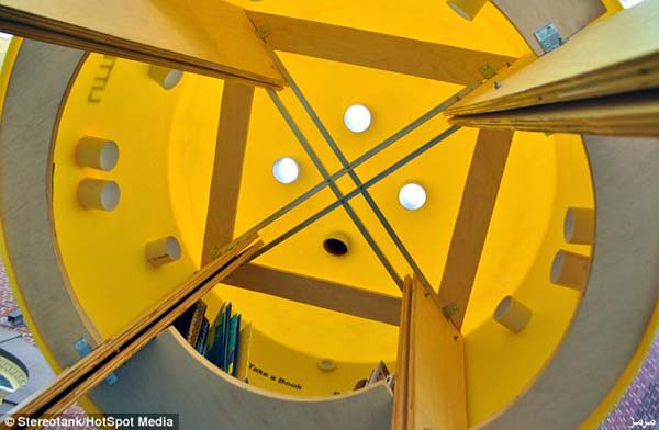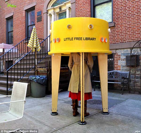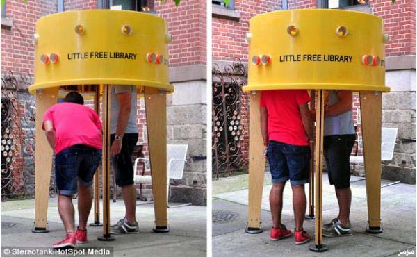 ويظهر في تلك الصور الإطار البلاستيكي للخزان مطلي باللون الأصفر، مع وجود ثقوب في الخارج؛ تسمح للمستخدمين بفحص الكتب الموجودة بالداخل قبل الدخول واستعارة الكتاب أو إعادة كتاب مستعار. وبالفعل اجتذبت تلك المكتبة الكثير من سكان مانهاتن، الذين قاموا أيضاً بالتبرع وإثراء تلك المكتبة بالعديد والعديد من الكتب القيمة.