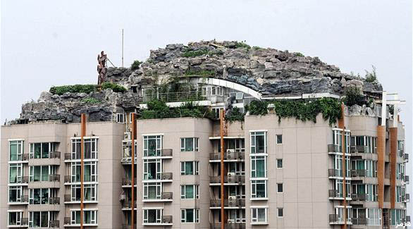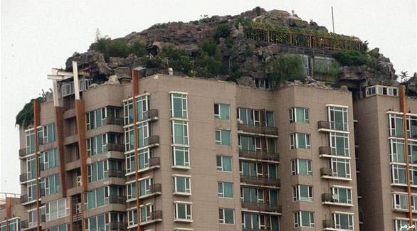 ستّ سنوات كاملة أمضاها بروفسور صيني يدعى جانغ لين في بناء ما لا يخطر على البال: فيلا جبلية أعلى بناية سكنية. بدلاً من أن يبحث هذا البروفسور عن منزل جبلي يقطنه، قرّر أن يأتي بالجبل إلى قلب العاصمة بكين، فدأب طوال سنوات ستّ على تحقيق المهمة المستحيلة، جالباً الصخور، ورافعاً إياها أعلى البناية، ثم بانياً البيت حتى يبدو وكأنه مشيّد، بصورة طبيعية، في قلب الصخور. هذه الفيلا لم تكن حين اشتراها البروفسور أكثر من علّية صغيرة، إلا أنه حوّلها – رغم احتجاجات الجيران وعدم حصوله على تصريح رسمي من البلدية – إلى هذا البيت الصخري، مضيفاً إليه الأشجار البرية التي تنمو عادة في البيئة الجبلية. لكن يبدو أن حلم البروفسور لين مهدّد بالضياع، أمام شكاوى الجيران من تصدّع جدران البناية، وخشيتهم من أن يؤثّر ذلك على سلامتهم، ويبقى الغريب حقاً كيف تمكن من بناء مثل هذا البيت دون إذن السلطات التي قالت إنه قد يضطر إلى هدم ما بناه في حين تأكد بالفحص الهندسي أنه غير آمن لبقية سكان البناية.