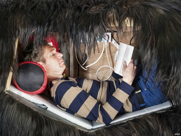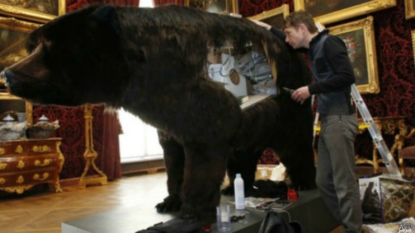 قدّم الفنان الفرنسي أبراهام بوينشيفال عرضا استثنائيا يقتضي بقاءه مدة 13 يومًا داخل جثة دب محنطة في متحف الصيد والحياة البرية في العاصمة باريس، بعد أنّ كان قد قدم نفس العرض، الذي أطلق عليه اسم “داخل جلد دب” في مركز كيرن للفنون المعاصرة في مدينة “دين” العام الماضي.